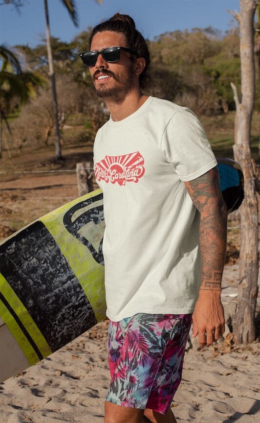 Some of our favorite designs include NC state outline shirts, Blue Ridge Mountains, Outer Banks, Blackbeard, pirate designs, local legends, and classic state flag styles. These timeless pieces celebrate everything that makes North Carolina special!